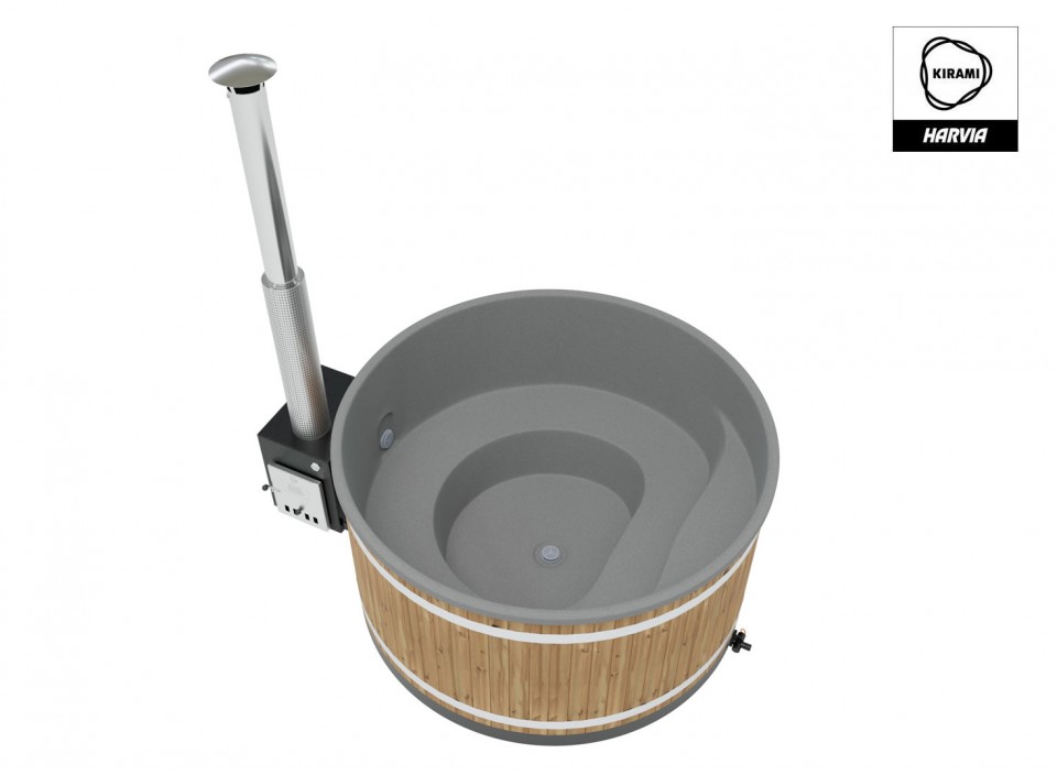 6 à 8 personnes - V: 1930 l - H: 110 cm - ø: 200 cm - Thermowood - Coque grise - Poêle Cube 35 kW