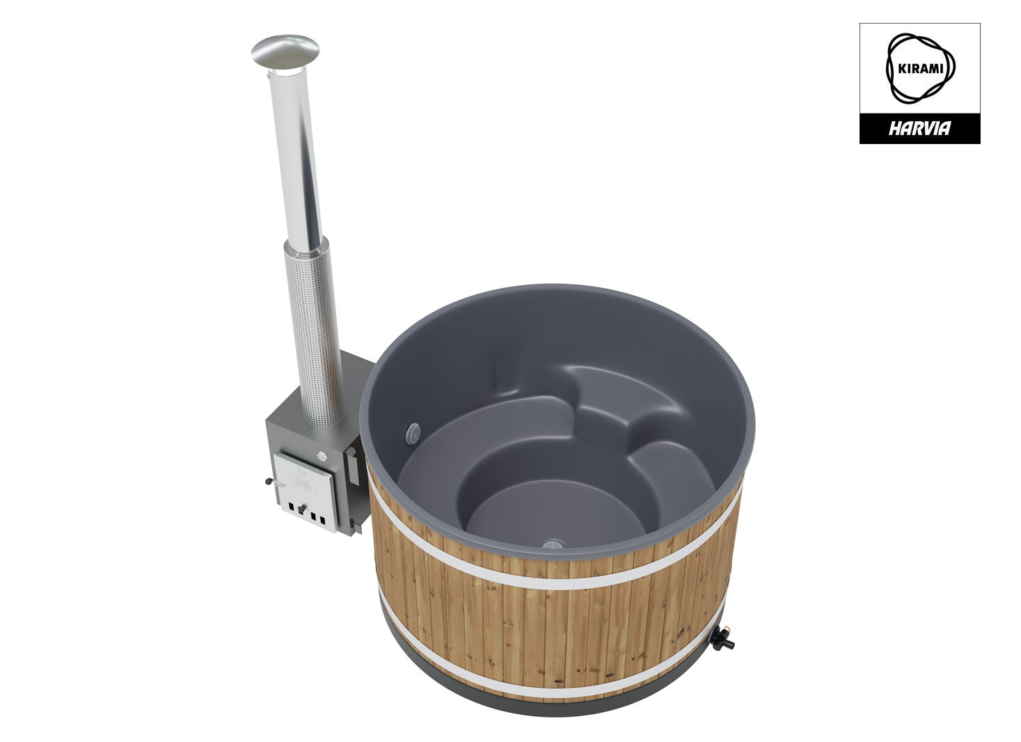 Ce bain nordique est équipé d’un poêle externe Macu fonctionnant au bois. Conçu en aluminium marin de haute qualité, il assure une montée en température rapide et efficace. Sa puissance élevée permet de chauffer facilement un volume d’eau important, même en conditions extérieures froides.