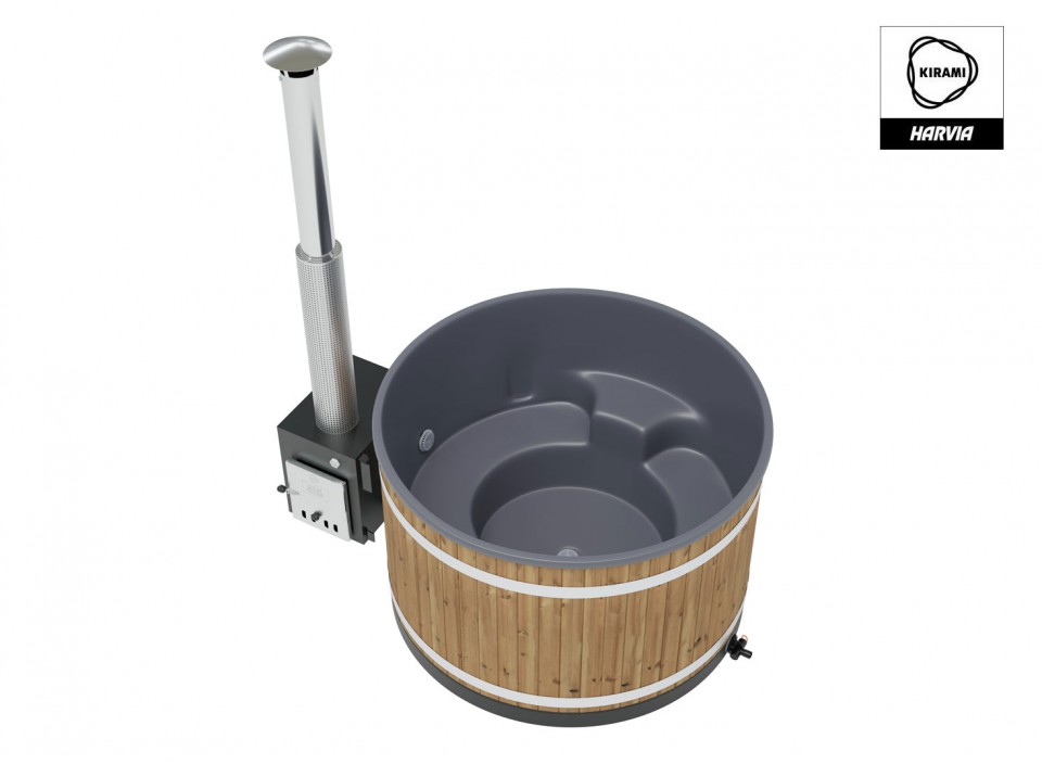 4 à 6 personnes - V: 940 l - H: 107 cm - ø: 170 cm - Thermowood - Coque intérieure grise - Poêle à bois Cube 35 kW