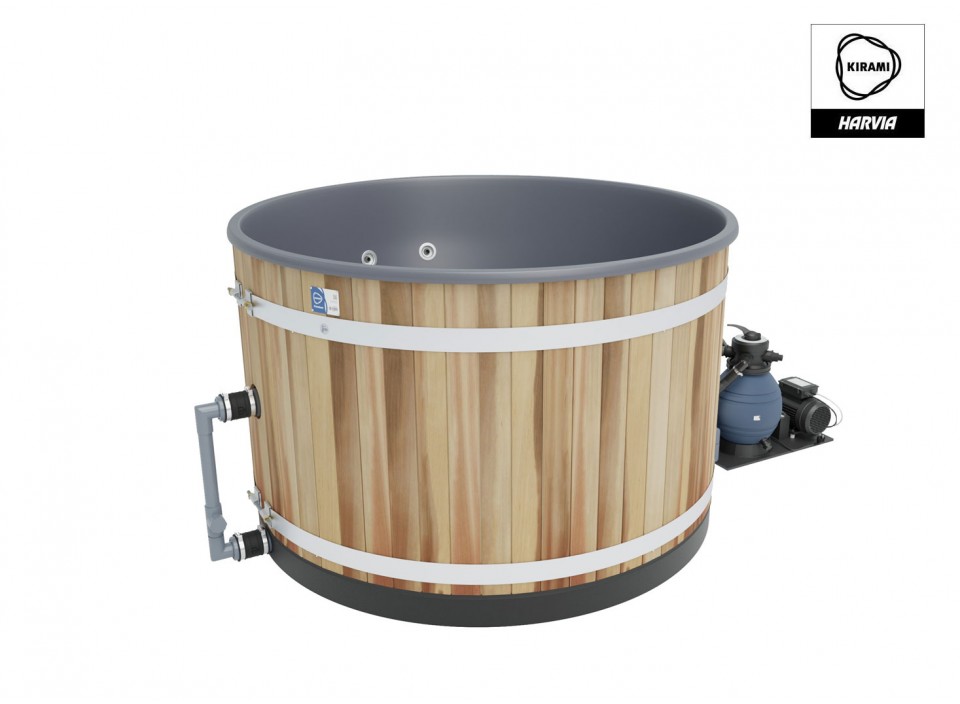4 à 6 personnes - V: 1420 l - H: 107 cm - ø: 170 cm - Cèdre rouge - Coque grise - Chauffage électrique - Jets massants