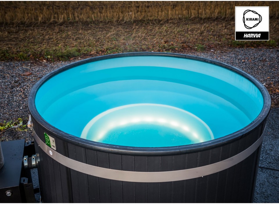 Le système d’éclairage LED Kirami apporte une atmosphère unique à votre bain nordique. À la nuit tombée, il diffuse une lumière douce et élégante pour créer un cadre relaxant et convivial.
