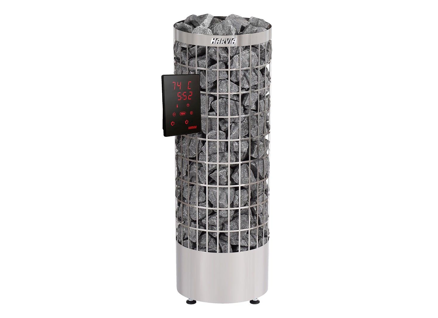 Le poêle électrique Harvia Cilindro XE PC90XE 9 kW en acier inoxydable avec le panneau de contrôle Xenio, produit une vapeur abondante pour votre sauna de 8 à 14 m3.
