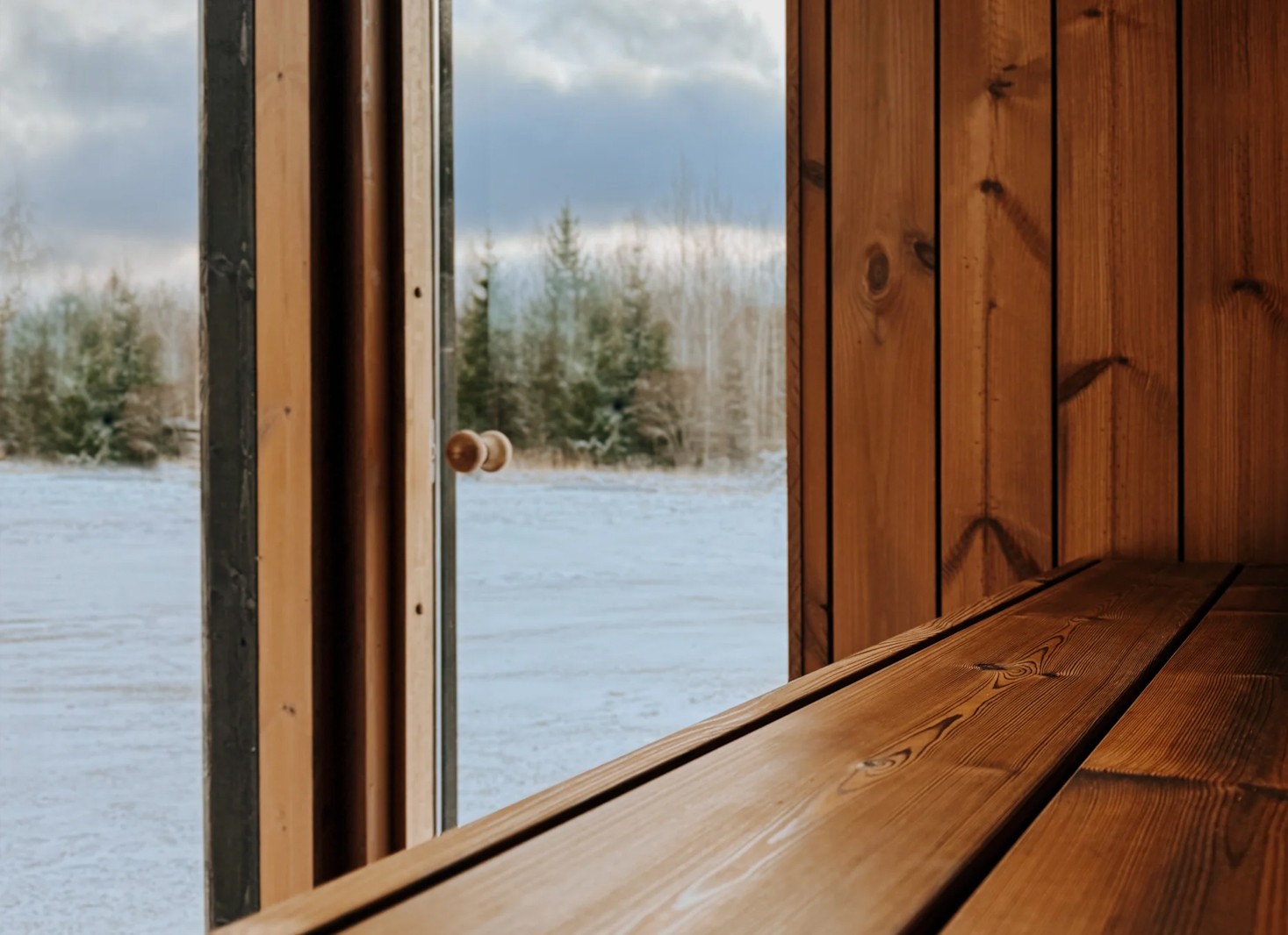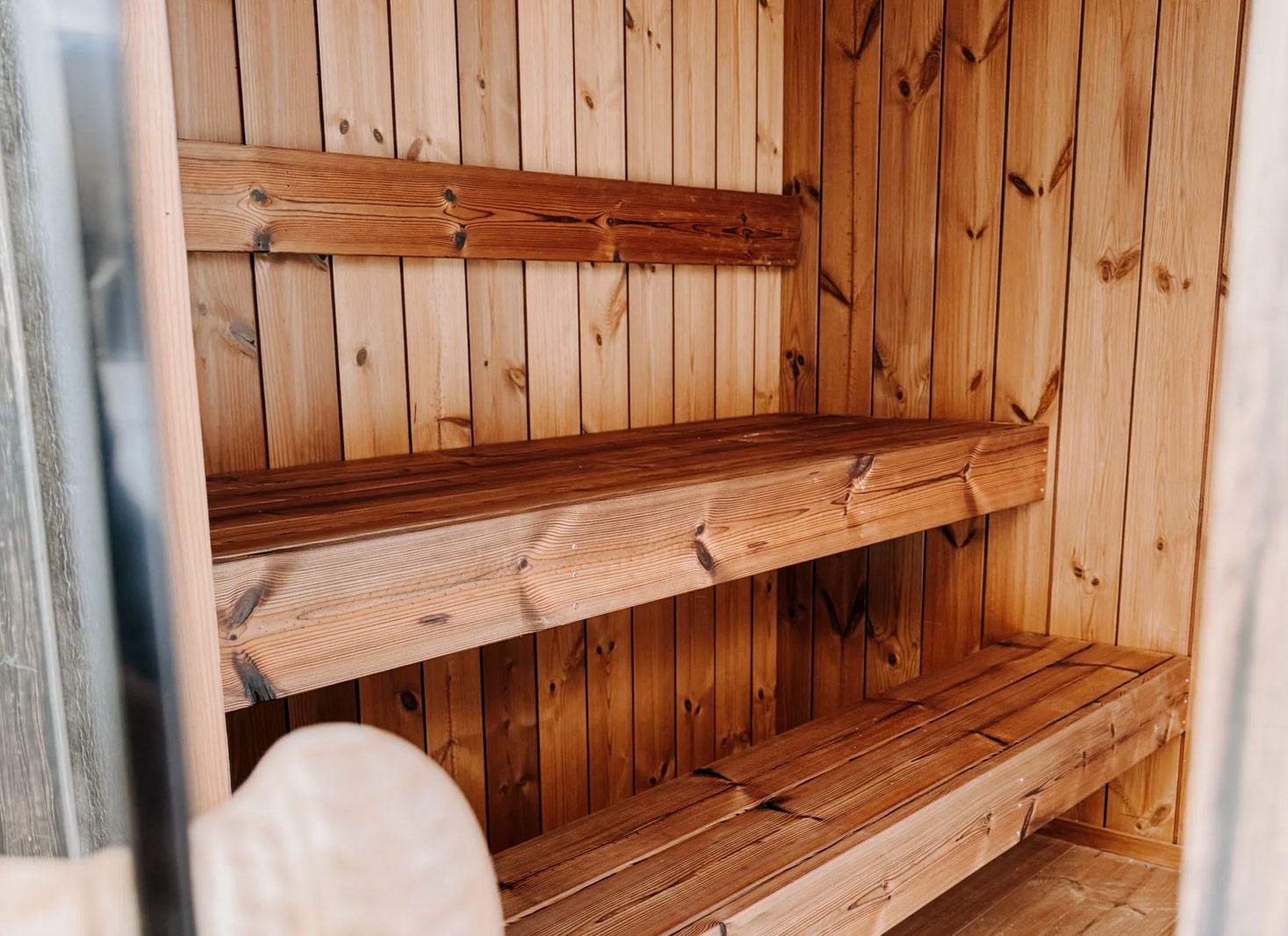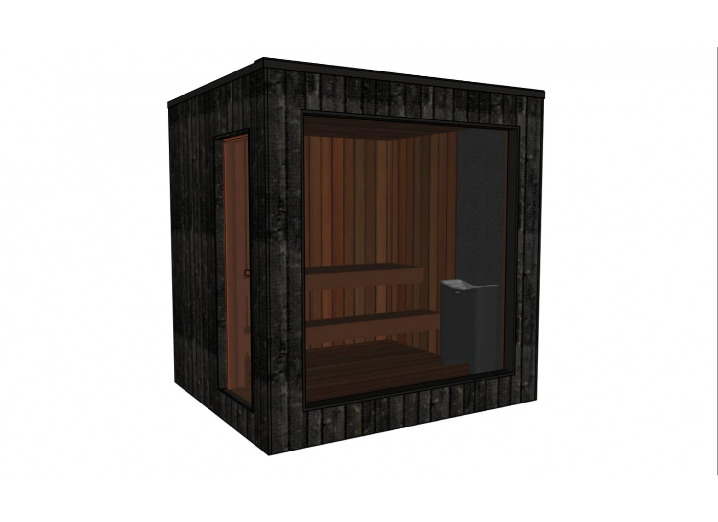 - Intérieur en pin ou tremble thermotraité, résistant aux fluctuations de température et d’humidité, ainsi qu’aux champignons et parasites. Les panneaux sont protégés par une cire spéciale sauna, appliquée sur les murs, le plancher et les bancs.