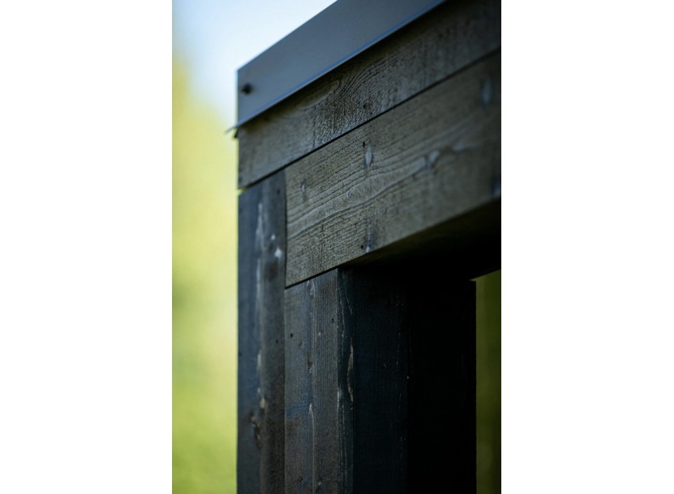 - Extérieur en épicéa durable, traité antiseptiquement puis recouvert d’une double teinture personnalisable selon vos préférences.