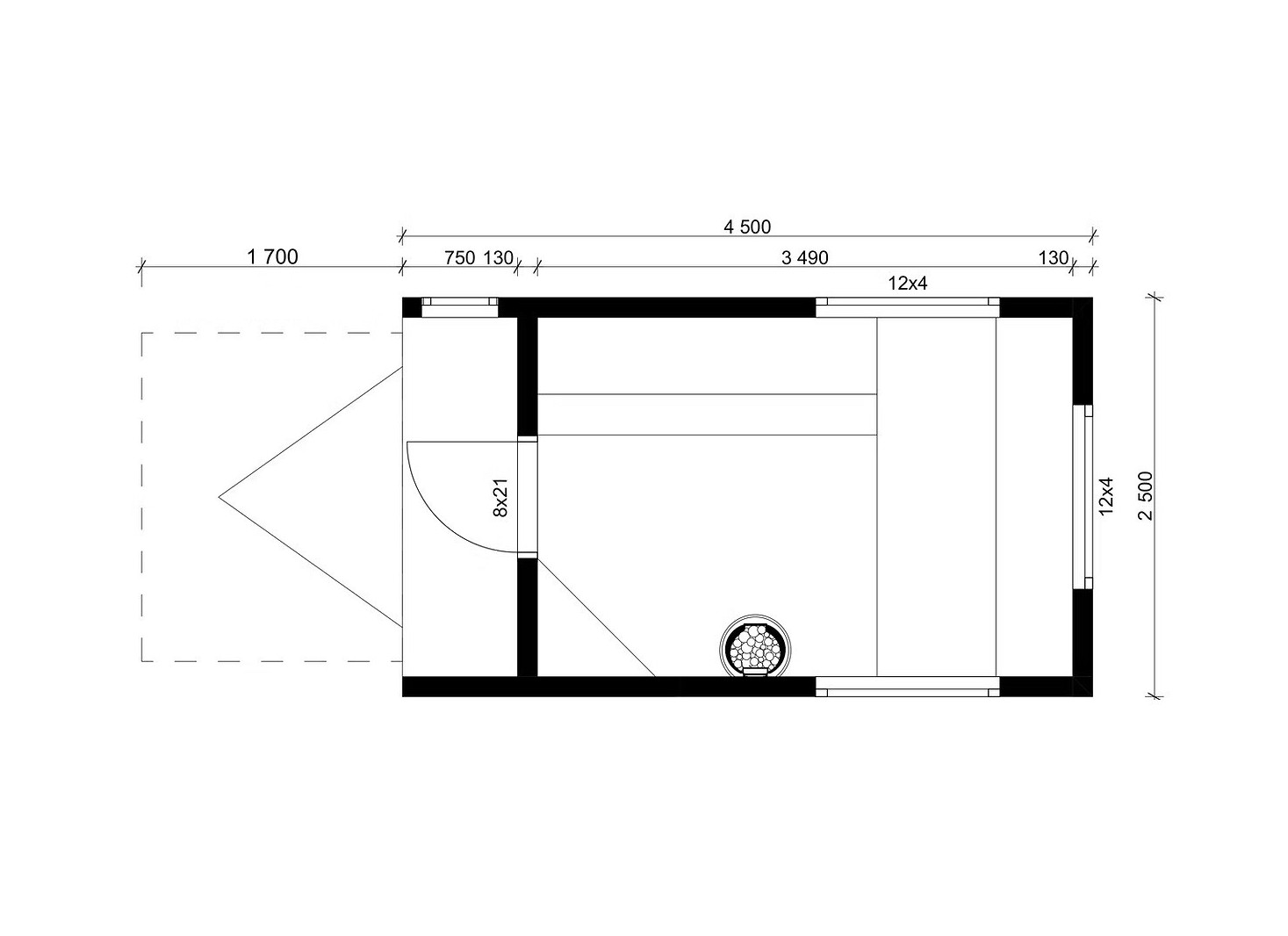 Largeur du sauna