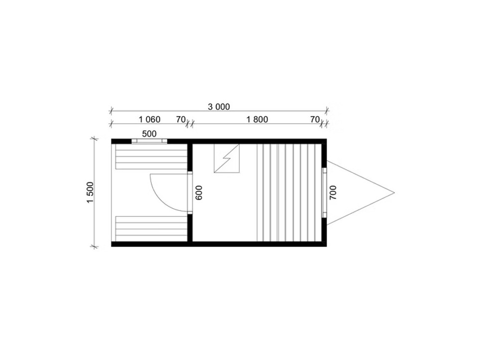- Revêtement extérieur : panneaux en épicéa (14 × 120 mm) des deux côtés