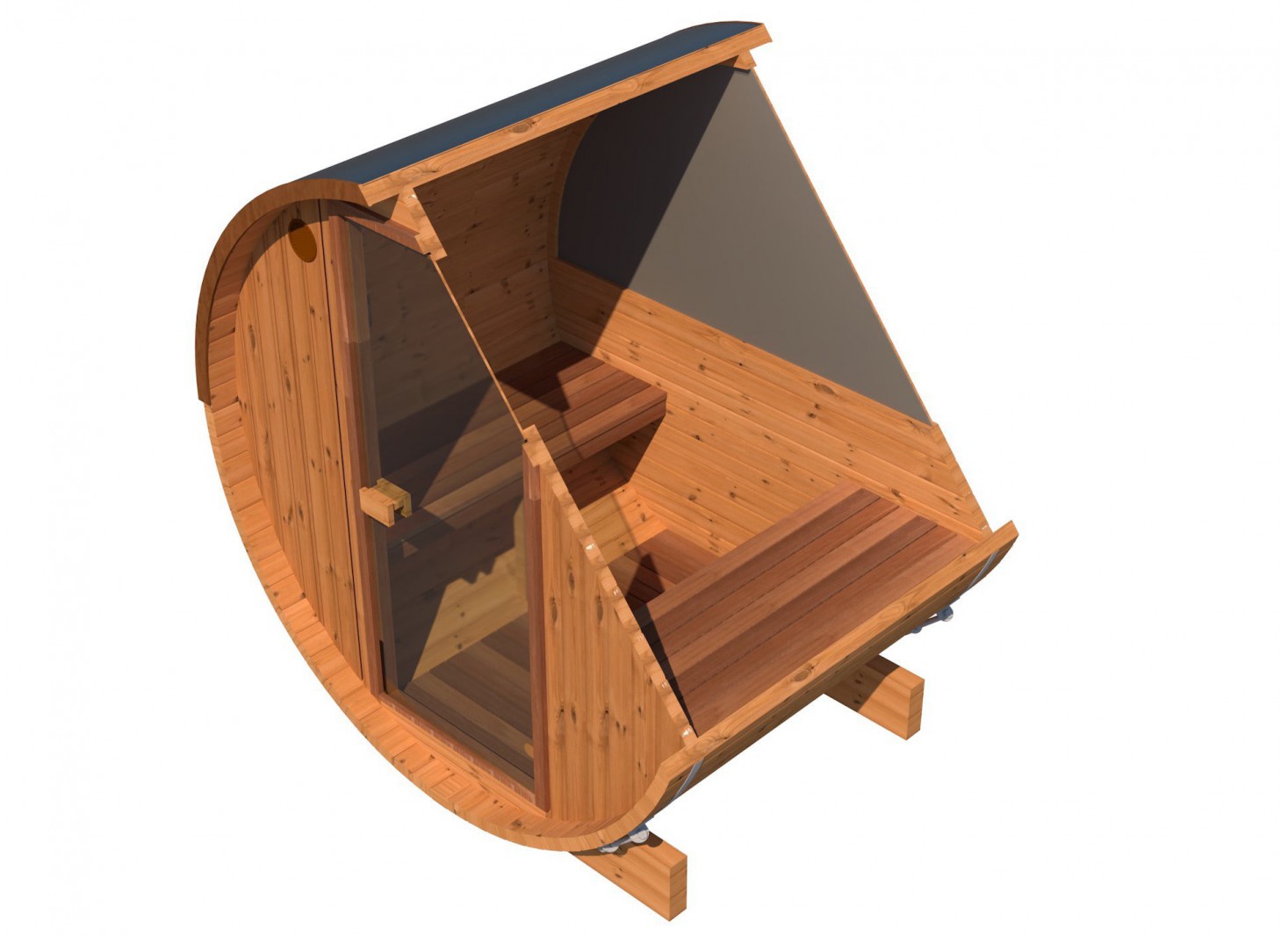 Maintenant, nos saunas en tonneau ont des parois plus épaisses et une meilleure stabilité grâce aux 40 mm d'épicéa nordique (Nordic Spurce) Thermo. Thermowood est plus léger que du bois traité de façon traditionnelle, il a aussi des avantages structurels permettant de faciliter le transport et l'installation de votre sauna.
