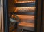 Le sauna est livré avec des panneaux muraux, un sol et un plafond en ThermoWood®, un banc et un dossier en thermo-aulne, une porte en verre trempé avec poignée premium, ainsi qu’un système de ventilation avec trois ouvertures.